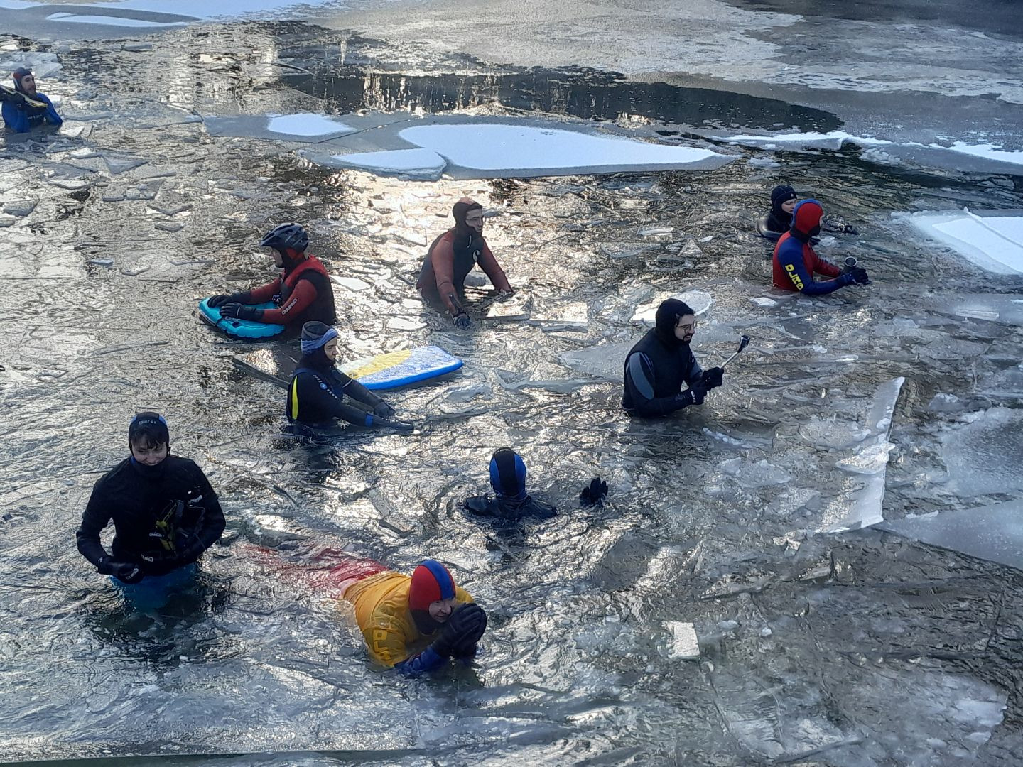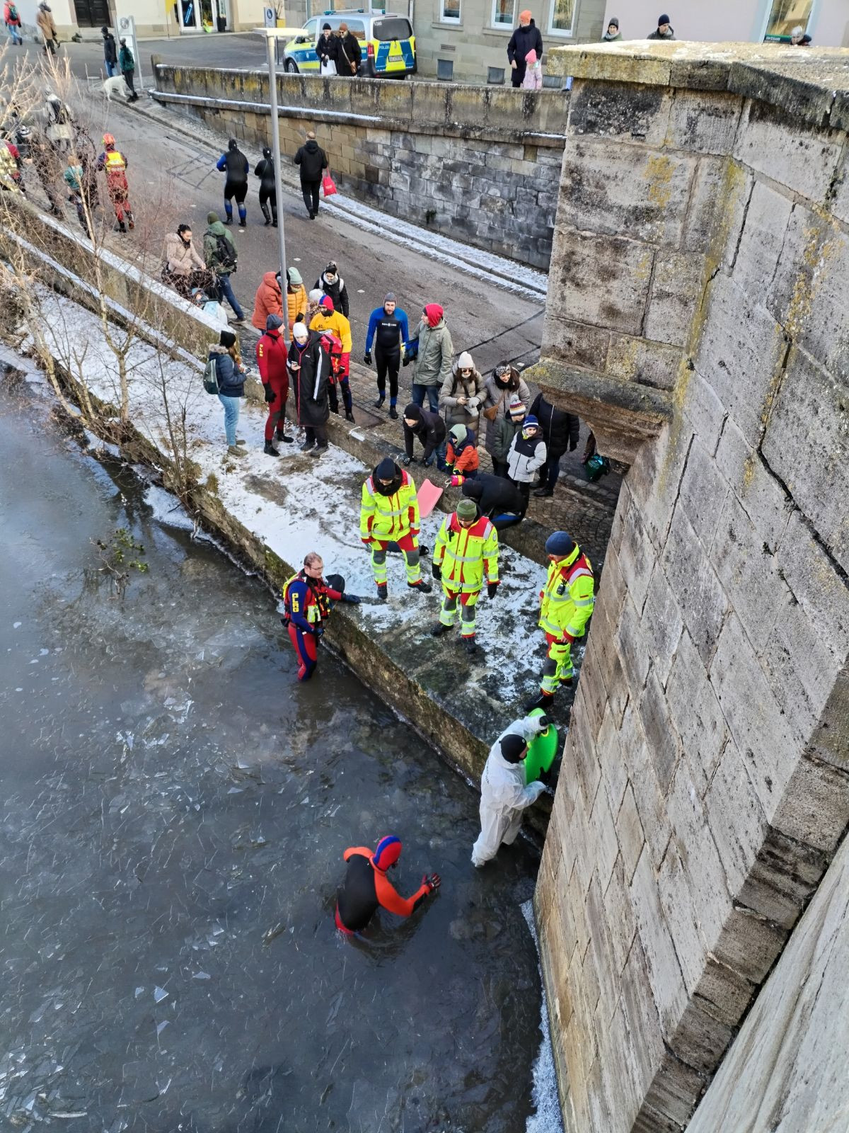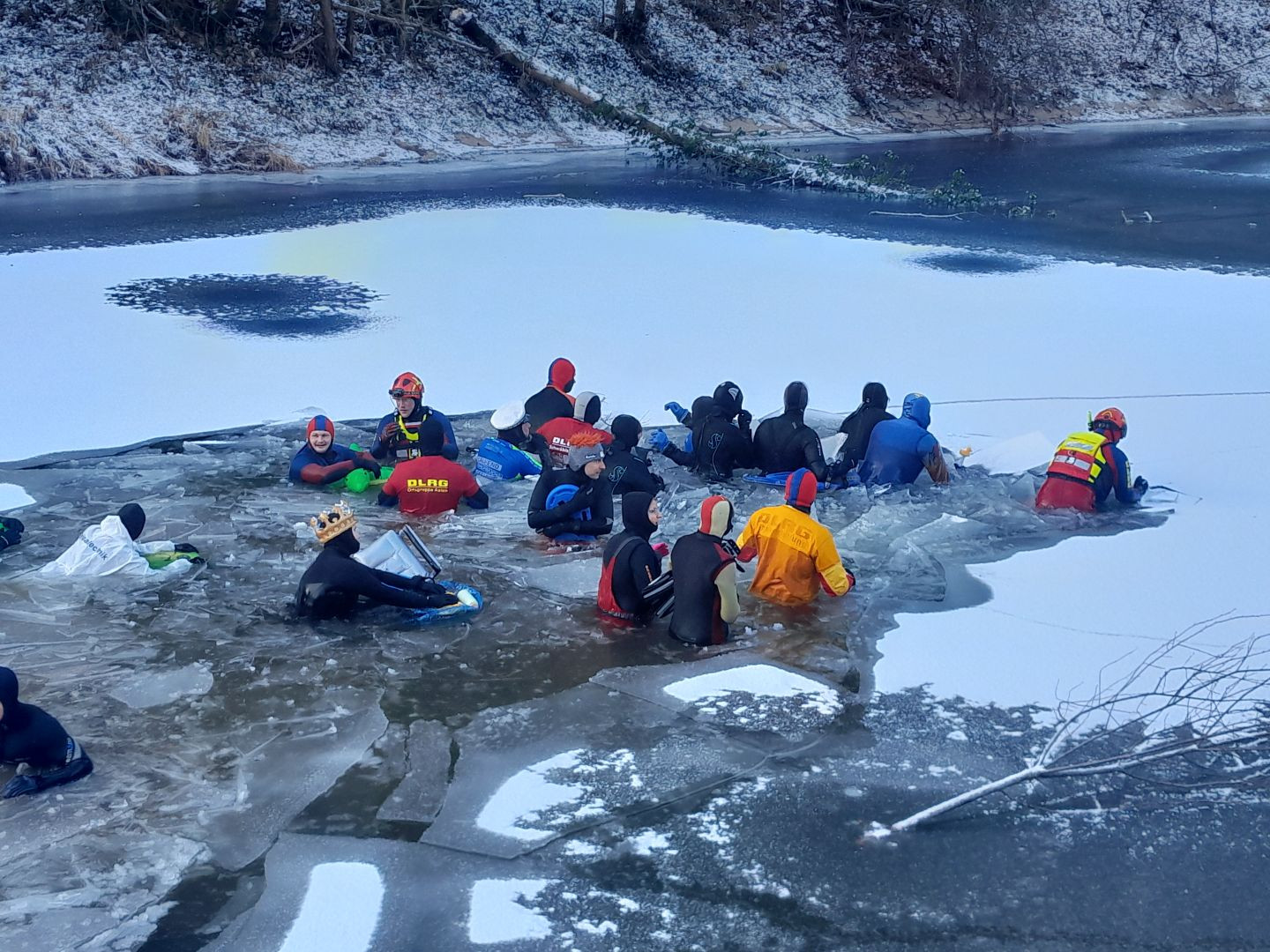Sehr erfahrene Taucher haben sich bei ca -4°C Außentemperatur und bei Plus 2°C Wassertemperatur in zugefrorenen Kocher begeben.